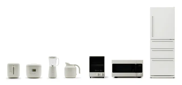 暮らしの道具としての姿を目指した炊飯器や電気ケトル、冷蔵庫などのキッチン家電シリーズ。